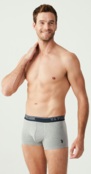 Мужские боксёры в наборе из трёх штук предлагают классический комфорт и стиль. В комплект входят однотонные тёмно-синие и светло-серые, а также синие с деликатным клетчатым узором, каждая пара с заметным логотипом бренда на эластичном поясе. Изготовленные из мягкого, дышащего материала, эти боксёры обеспечивают комфорт в течение всего дня. Их простой дизайн делает их практичным выбором для повседневного использования, а качественное исполнение гарантирует долговечность. Идеальны для мужчин, которые ценят удобство и сдержанную элегантность.