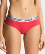 Женские трусики Atlantic — набор из трёх хипстеров из натурального хлопка Набор включает три пары женских трусиков-хипстеров, выполненных из 100% натурального хлопка. Мягкая и дышащая ткань обеспечивает комфорт и свежесть на протяжении всего дня, а аккуратный крой гарантирует идеальную посадку без сдавливания. Модель имеет низкую посадку и широкие боковые части, благодаря чему трусики удобно сидят и остаются незаметными под одеждой. По талии проходит внешняя эластичная резинка с логотипом Atlantic, которая придаёт модели современный и стильный акцент. В набор входят три однотонные модели — кораллового, жёлтого и голубого цвета, создающие яркое и позитивное настроение. Особенности модели: натуральный хлопок — мягкость и воздухопроницаемость; фасон хипстеры — комфортная посадка и современный крой; внешняя резинка с логотипом — стильная деталь и надёжная фиксация; яркие цвета: коралловый, жёлтый и голубой; удобный комплект для повседневного ношения. Женские хипстеры Atlantic — это сочетание естественного комфорта, стильного дизайна и безупречного качества на каждый день.