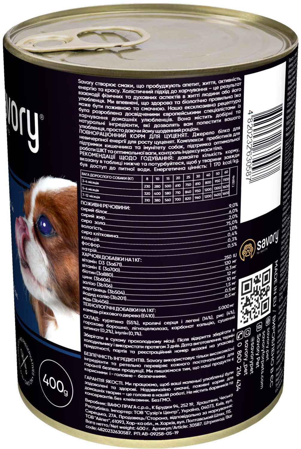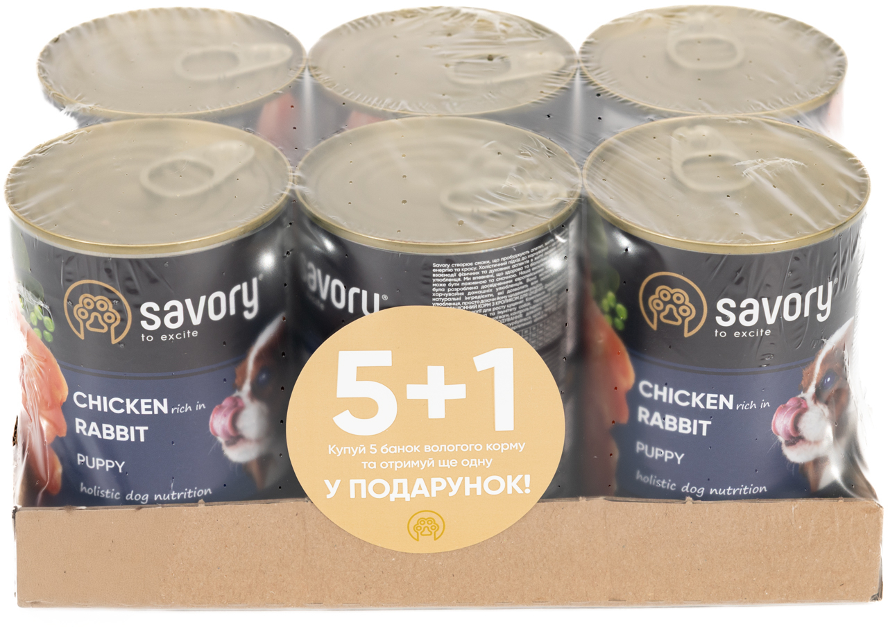 Набор влажных кормов 5+1 для щенков всех пород Savory Dog All breeds Puppy Chicken Rich in Rabbit паштет с кроликом 400