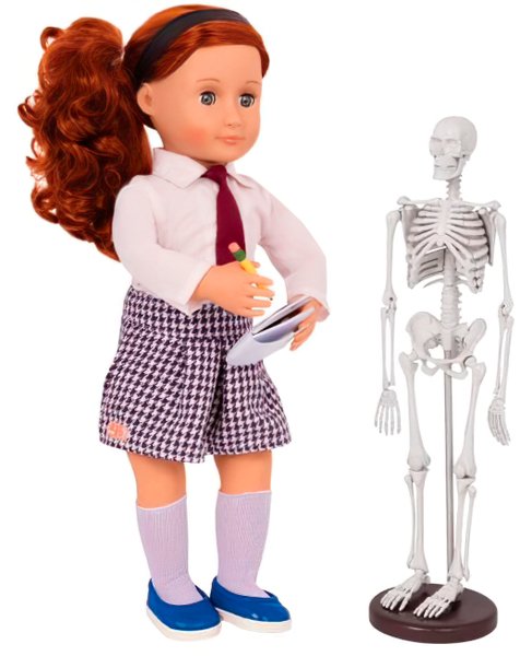 Помогите любимым куклам сделать свое следующее крупное открытие с помощью «Научного набора для школы»! В этом лабораторном наборе научного класса есть все необходимые STEM-аксессуары для кукол, которые обязательно вызывают у них воображение. Комплектования: 24 предмета. В частности фартук, защитные перчатки для кукол, различные пробирки и стаканы, горелка Бузен, микроскоп, и даже модель скелета. Запишите в блокнот все свои открытия вместе с Our Generation. Рекомендуемый возраст 3+.