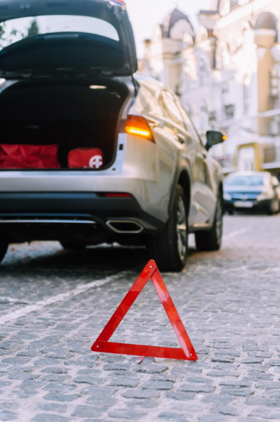 - Знак аварийной остановки. Обязательно должен быть установлен на дороге приближающегося транспорта.