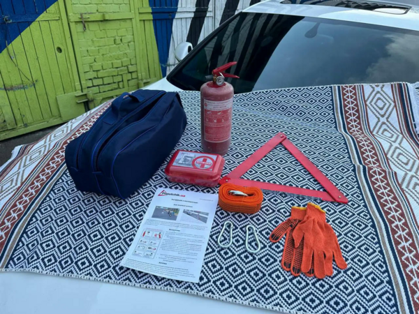 | Комплектация (возможны изменения в разных поставках) | Аптечка, Знак аварийной остановки, Огнетушитель (2 кг), Перчатки, Сумка, Трос 3 т с крючками |