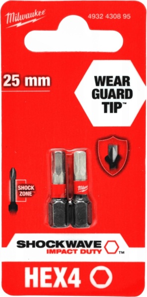 Набор бит Milwaukee Shockwave Hex4х25мм, 2шт (4932430895)