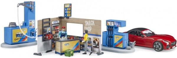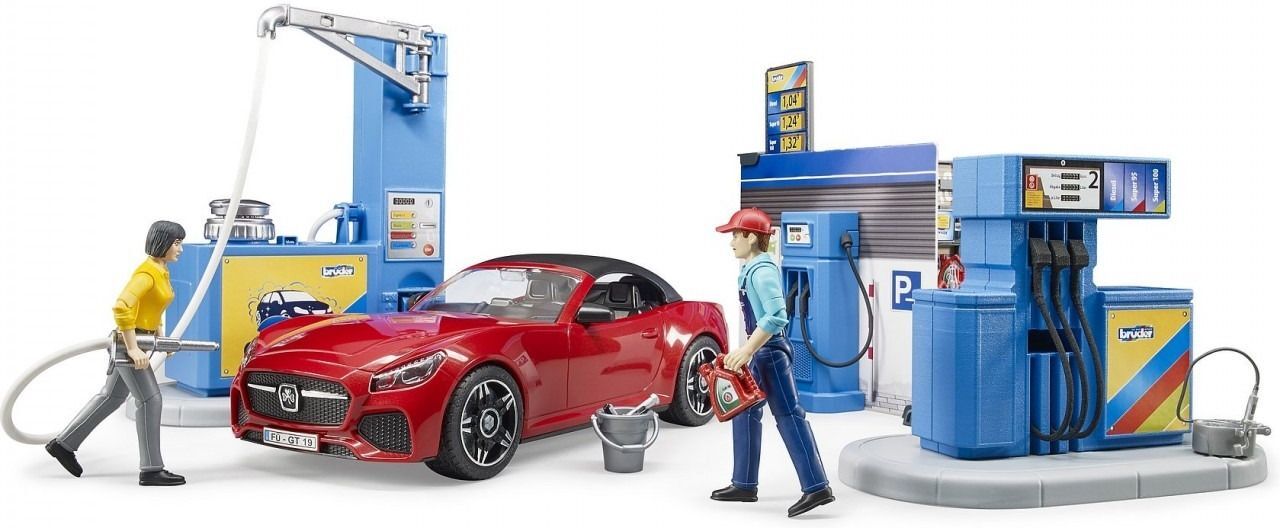 Набор Bruder - АЗС с автомойкой, автомобилем Roadster и фигурками (62111)