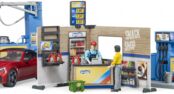 Почти все транспортные средства имеют общую потребность заправляться и время от времени чиститься. Для этого существует хорошо оборудованный игровой набор АЗС Bruder с автомойкой. На заправке доступны все обычные виды топлива, а также зарядная станция для электромобилей. Заправщик работает в современном торговом зале с прайс-табло, монитором и современной кассовой системой. Для очистки грязных транспортных средств доступна полностью функциональная мойка. Воду можно заливать во встроенный резервуар. Давление создается с помощью встроенного воздушного ручного насоса.