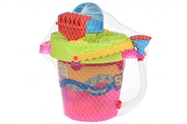 Большой набор для песка, который поражает своим многообразием, от производителя Same Toy. Все элементы яркие, выполненные из качественной и прочной матовой пластмассы. К большому розовому ведерку (высота 28 см) крепится душ таким образом, что ребенку не придется поднимать емкость с водой. На ведерко или крупное сито можно закрепить элемент с воронкой и мельницей, через который будет наливаться вода или насыпаться песок.