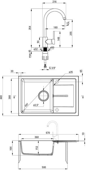 | Габариты мойки (ШхДхГ), см | 44х67х16,4 |