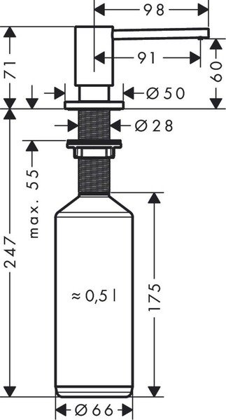 - Дозатор моющих средств Hansgrohe A41, 500 мл, черный матовый (40438670).