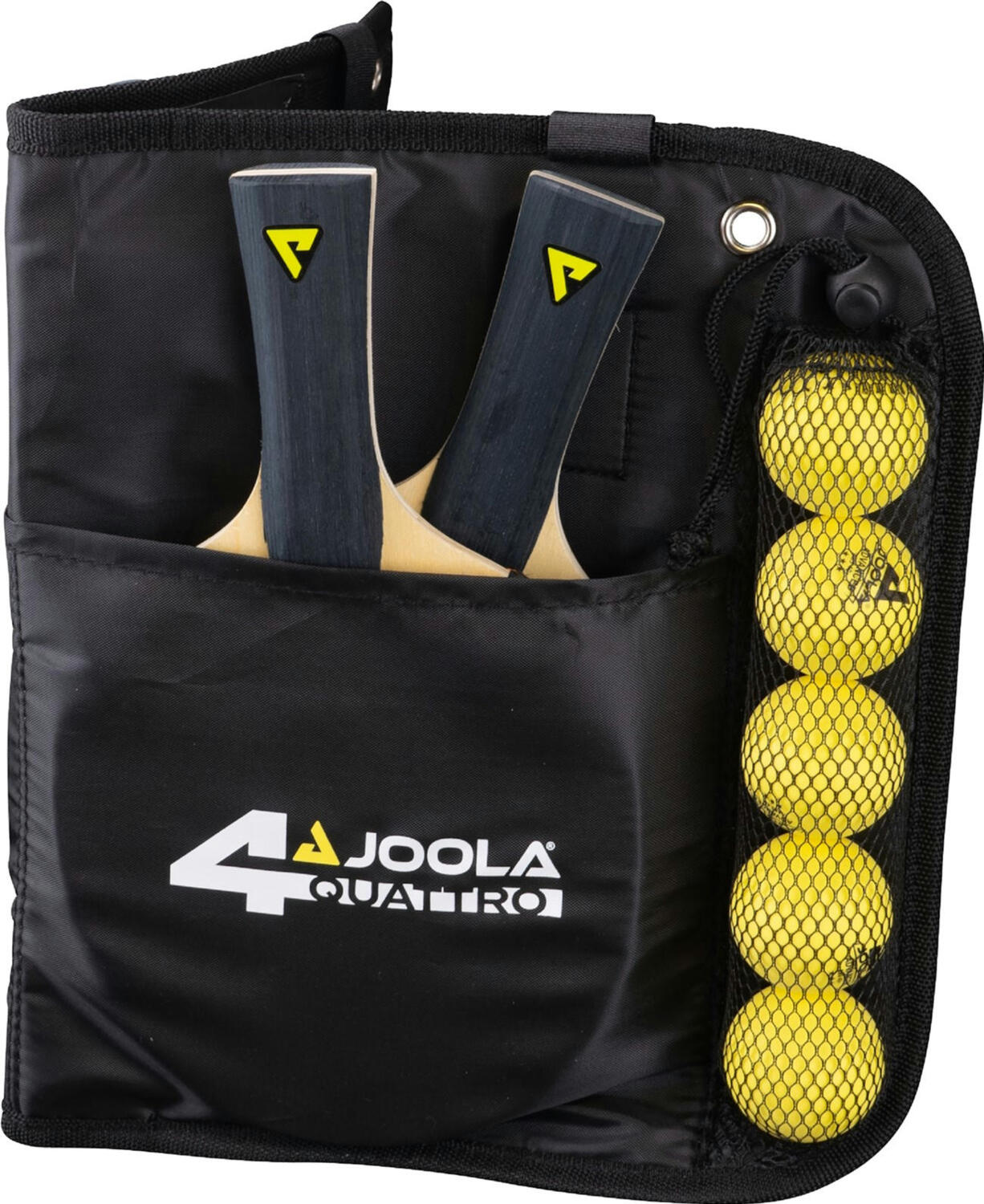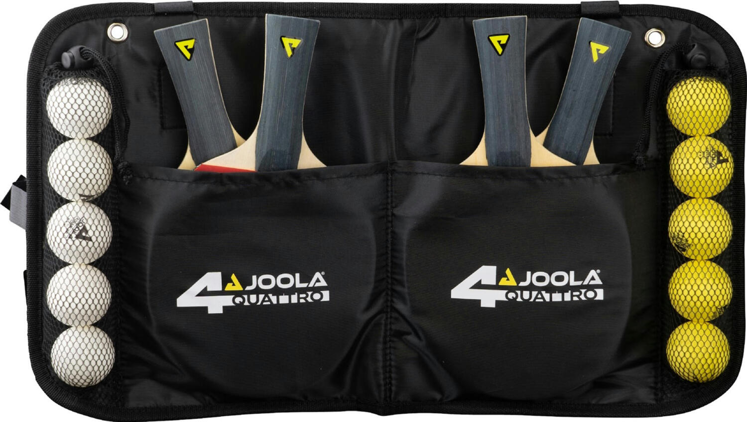 Семейный комплект Joola Set Quattro поставляется в удобной сумке, которую можно прикрепить к столу. Она вмещает все необходимое для игры в настольный теннис и помогает хранить инвентарь в порядке. Набор отлично подходит для игры с семьей, друзьями или для тех, кто хочет иметь все под рукой и быть всегда готовым к матчу.