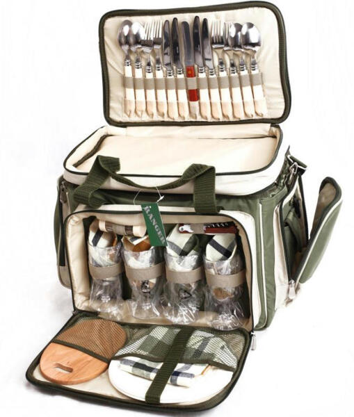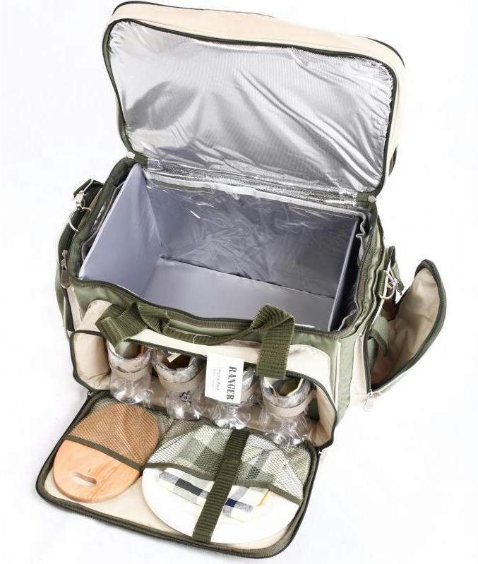 Набор для пикника Rhamper (НВ 4-533) на четыре персоны отлично подходит для семьи или небольшой компании. В объемной изотермической сумке хорошо сохранятся скоропортящиеся продукты, останутся охлажденными напитки, кроме того, их будет удобно транспортировать. Термоотдел оснащен съемным полиэтиленовым чехлом, который в случае необходимости можно помыть. Благодаря полиэтиленовому чехлу ваша сумка всегда будет оставаться чистой внутри; если положите мясо или продукты, которые протекли, он защитит. После использования посуду на природе куда-то нужно девать, просто положите ее внутрь и не волнуйтесь, что она испачкается. Чтобы в термоотсеке температура была ниже, используйте аккумуляторы холода. Дополнительно набор Rhamper комплектуется перемычками, благодаря которым вы можете сделать сумку более жесткой или просто разделить объем термосумки на отсеки. В верхней части сумки расположены столовые приборы, в передней — тарелки, бокалы и аксессуары. С этим набором вы никогда ничего не забудете; все вещи, которые могут пригодиться во время отдыха, будут под рукой. В специальных карманах и отсеках компактно расположены столовые приборы. Не забыли вложить в пикниковый набор и разделочную доску, хлебный нож, открывалку. Тканевые салфетки и скатерть сыграют свою роль в сервировке стола на природе. Все приборы изготовлены из пищевой стали и высококачественного пищевого пластика. Отдыхать с комфортом, цивилизованно можно и на природе. Стоит один раз купить набор для пикника, и вы будете ждать выходных, чтобы снова и снова выбираться на любимые места за городом, приготовить для друзей и близких уху с дымком или шашлык на костре.