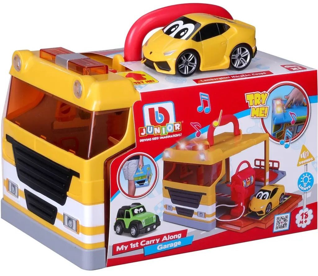 Набор игровой Bb Junior Мой первый переносной гараж - это замечательная игрушка, созданная специально для маленьких автолюбителей. С гаражом My 1st Carry Along Garage ваш ребенок сможет стильно перевозить свои любимые автомобили из коллекции My 1st. Каждый Carry Along Garage включает сервисную станцию с бензоколонкой и автомобильным подъемником. Веселые огни и звуки управляются кнопками на крыше. Игровой набор подходит для детей от 18 месяцев и не только. Набор в игровой форме способствует пониманию причинно-следственного принципа и воображению. Батарейки для гаража включены в комплект поставки. Игровой набор станет идеальным подарком, который принесет море радости и подарит незабываемые мгновения веселья.