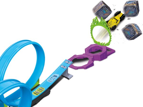 Особенностью набора является возможность перенастройки колеи, что позволяет создавать различные конфигурации трассы. "Dual Race Challenge" включает 2 различные конфигурации с сумасшедшими петлями и прыжками, обеспечивающие невероятные эмоции и адреналин. Отправляйте свои транспортные средства Cyber Racers, вращаясь и возвращаясь через опасные испытания.