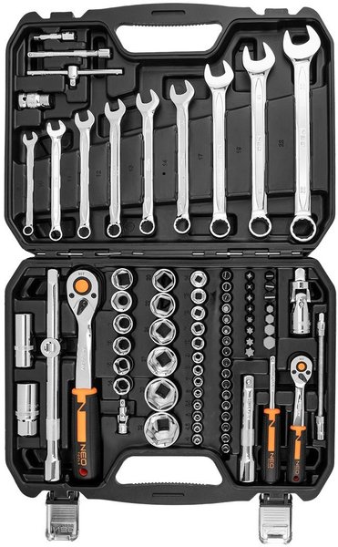 - Набор инструмента Neo Tools, 82шт, 1/2", 1/4", CrV, eco кейс (10-058)
