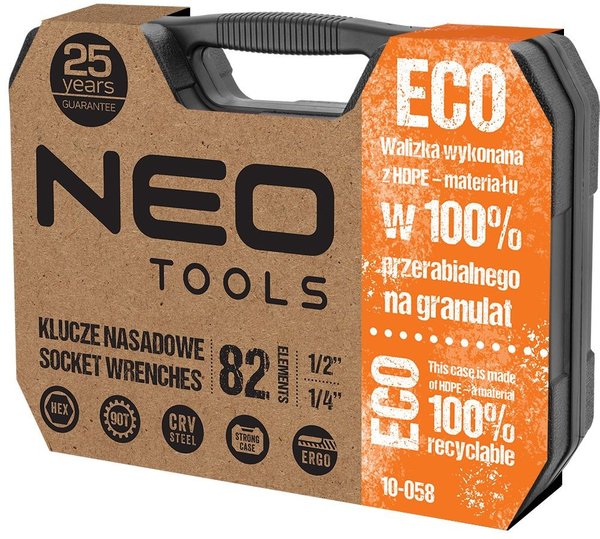 Набор инструмента Neo Tools, 82шт, 1/2", 1/4", CrV, eco кейс (10-058)