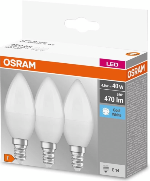 - Набор ламп 3шт Osram Led E14 4.9Вт 4000К 470Лм B40 (4058075429680)
