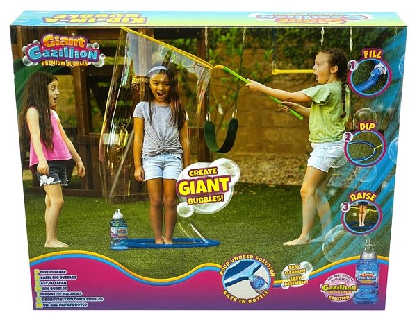 С помощью Giant Gazillion Bubbles Kid-In-A-Bubble вы можете создать пузырь настолько большой, что в него поместится ребенок! Просто заполните лоток раствором Giant Gazillion Bubbles Solution, опустите гигантскую палочку в лоток и осторожно поднимите вверх, чтобы создать гигантский пузырь! Благодаря простой сборке и легкой очистке удовольствие от пузырей никогда не закончится! Каждый Kid-In-A-Bubble включает в себя две бутылки раствора Giant Gazillion Bubbles.