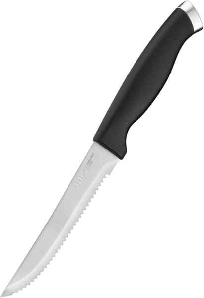 Набор ножей для стейка Ardesto Gemini Gourmet характеризуют удобство, острота и долговечность. Лезвие из нержавеющей стали 3cr13 гарантирует экологичность и безопасность для здоровья. Особенностью ножа для стейка является его специальная форма и заострение, которое обуславливает легкую нарезку мяса и сохраняет его сочность и структуру. Пластиковая эргономичная рукоятка черного цвета обеспечивает комфорт использования без усталости. Комплектование содержит 2 предмета (12 см), которые можно мыть в посудомоечной машине.