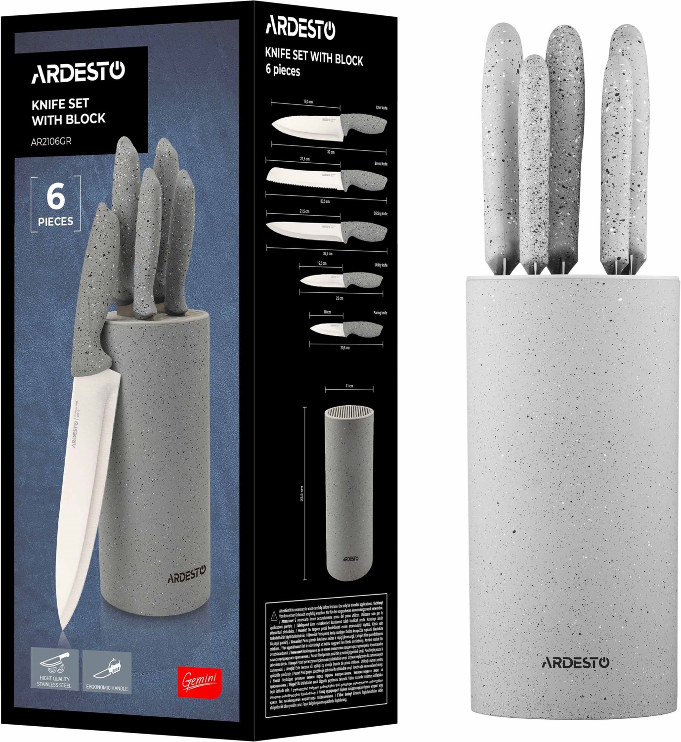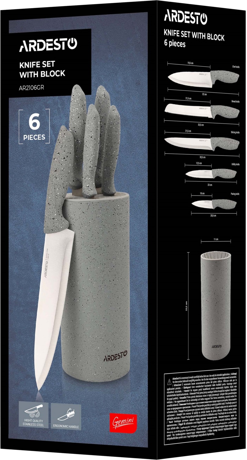 Набор ножей с блоком ARDESTO Gemini, 6 предметов, серый (AR2106GR)