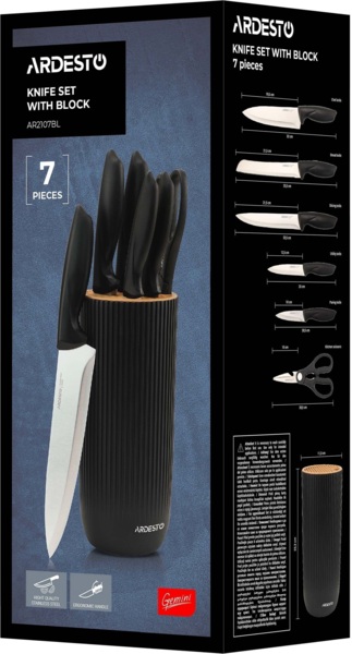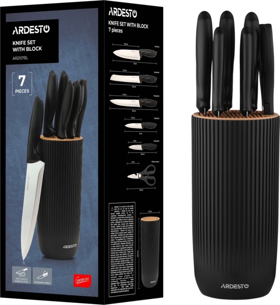 - Набор ножей с блоком ARDESTO Gemini, 7 предметов, черный (AR2107BL)