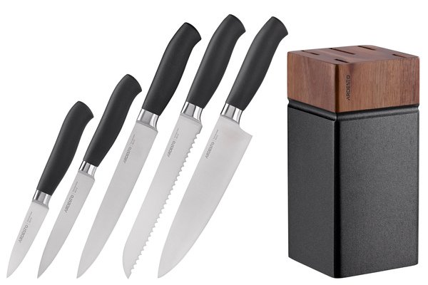 Кухонные ножи — это та стихия, в которой компания Ardesta чувствует себя как "рыба в воде". Технологии, знания и инновации формируют основу стратегии производства ножей от Ardesta. Это отношение проявляется в качестве продукции и модели управления, которая поддерживает идеалы постоянного развития. Бренд сейчас представлен в более чем 120 странах мира. Присматриваться к культурным различиям в каждой из этих стран — это один из принципов ведения бизнеса Ardesta. В этом отношении, компания сочетает домашние ценности с местными традициями, что образует гармоничную атмосферу во всех своих структурах. Набор состоит из пяти ножей серии Black Mars, в который входят универсальный нож, нож поварской, нож для хлеба, нож для овощей, нож-слайсер, и деревянного блока. Лезвия и ручки изготовлены из нержавеющей стали. Подходит для использования в посудомойной машине.