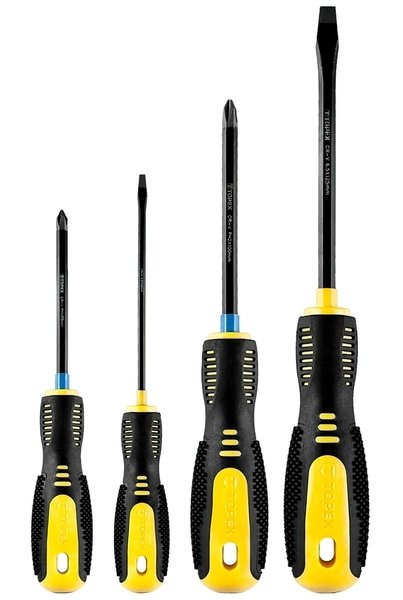 Набор отверток TOPEX предназначен для выполнения механических работ, а также работ, выполняемых мастерами-любителями. Стержень каждой из четырех отверток изготовлен из прочной хромомолибденовой стали, обеспечивающей долгий срок службы инструмента. Магнитное жало из закаленной стали облегчает работу с инструментом. Эргономичная пластмассовая рукоятка, покрытая антискользящим материалом, обеспечивает комфорт и безопасность во время работы. Бренд TOPEX предназначен для домашних мастеров.