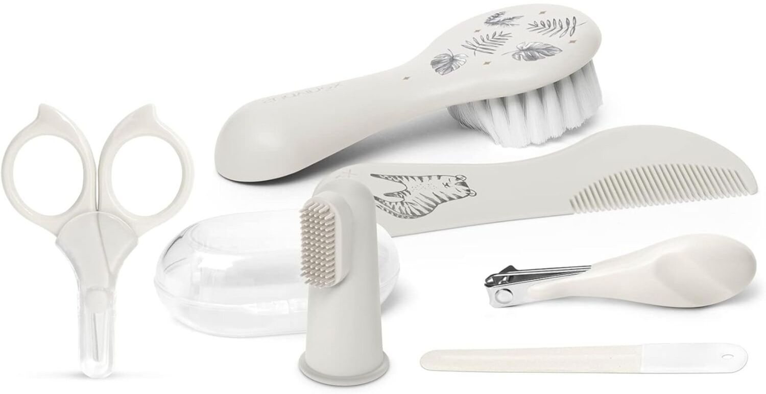 | Комплектация | Зубная щетка-наперсток, Контейнер, Косметичка, Кусачки, Ножницы, Пилочка, Расческа, Щетка-расческа |