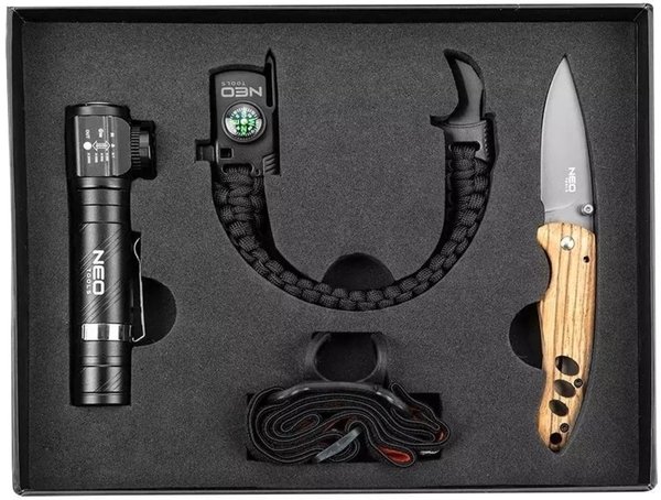 Набор Neo Tools 63-033 в специально разработанной коробке с магнитной застежкой, состоит из 3 предметов. Налобный фонарь Neo Tools 99-026, Туристический браслет (серии выживания) 5-в-1, Neo Tools 63-140 и Складной нож Neo Tools. Это комплексный набор для выживания, который пригодится для использования в экстремальных условиях и гарантирует поддержку в различных ситуациях. Благодаря оформлению и размещению товаров в презентабельной коробке, отлично подойдет в виде подарка.