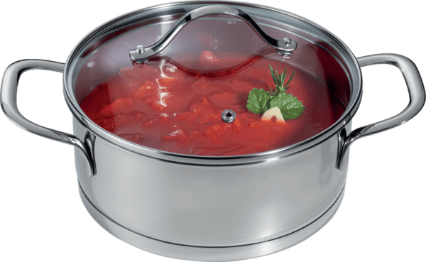 Плотно прилегающая крышка из закаленного стекла сохраняет тепло и влагу. Она имеет отверстие для вывода пара и прочную ручку из нержавеющей стали. Благодаря прозрачной стеклянной крышке можно контролировать процесс приготовления.
