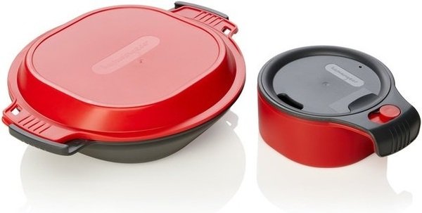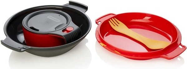 Набор посуды Humangear GoKit Deluxe состоит из 7 компонентов: сюда входит тарелка, миска, ложко-вилка GoBites Uno, многоразовая зубочистка и двойная кружка cupCUP. Набор изготовлен из легкого, долговечного и безопасного материала, который не содержит вредных примесей. Продуманные детали подарят вам лучшие впечатления от использования этой посуды. Миска и чашка имеют внутренние отметки объема, с помощью которых удобно измерять количество жидкости во время приготовления блюд или напитков. Миска GoKit, кроме своей прямой функции, выполняет еще роль контейнера для других деталей набора, а тарелка служит крышкой - они соединяются между собой с помощью простого, но надежного встроенного механизма блокировки. Чашка CupCUP состоит из двух чашек друг в друге и крышки с отверстием для питья, то есть вы можете использовать ее различными способами. Несомненно, набор посуды Humangear GoKit Deluxe содержит все, что может понадобиться в походе, чтобы с комфортом перекусить после долгой дороги.