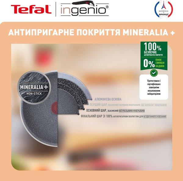 Хотите упростить себе жизнь на кухне? Ingenio здесь, чтобы помочь! Благодаря съемной ручке вы можете готовить на плите, подрумянивать блюда в духовке и хранить остатки в холодильнике. Кроме того, вы сэкономите место в своих шкафах благодаря возможности штабелирования: Ingenio — это гораздо больше, чем просто сковорода! Откройте для себя сковороду Tefal Ingenio Natural Force, которая является частью новой линейки основных кухонных принадлежностей для ежедневного приготовления здоровой пищи идеал. Вдохновленная природой, Ingenio Natural Force оснащена новым сверхстойким антипригарным покрытием Mineralia+, сочетающим в себе минералы и впечатляющие антипригарные результаты, для приготовления пищи с низким содержанием жира и длительного действия.