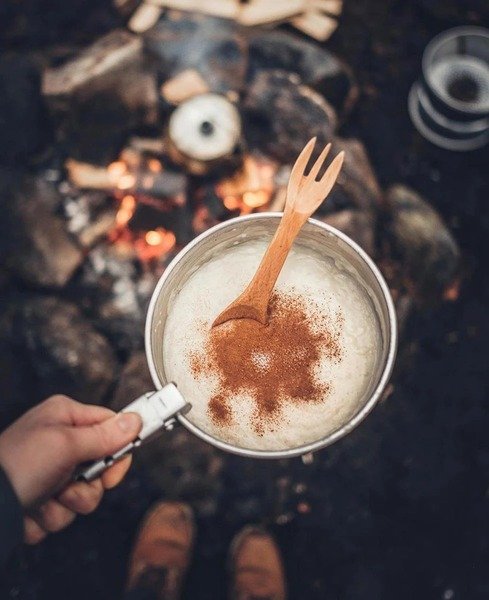 - Сковорода служит крышкой для котелка, чтобы ускорить закипание воды и сохранить ароматы блюд. Сковорода выполнена из классического алюминия.