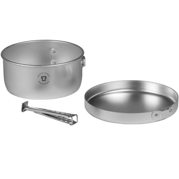 Camping Set 624-1.5 — базовый набор посуды для приготовления еды на природе от шведского бренда Trangia. Предназначен для 2–3 человек. В набор входят: котелок на 1.5 л, сковорода-крышка 18 см и съемная ручка. Котелок выполнен из облегченного алюминия, сковорода — из классического алюминия. Вес комплекта — всего 315 г. Для хранения и транспортировки все элементы складываются вместе, образуя жесткий кейс для горелки и кухонных мелочей. Набор можно использовать с любым источником тепла: туристическими горелками и плитами, на костре или домашней печи. Посуда идеально подходит к фирменной плите Trangia Stove 25 Large и может служить дополнением к оригинальной посуде, которой та укомплектована. Trangia Camping Set 624-1.5 одинаково хорошо подойдет как для туризма, так и для неэкстремального отдыха. Благодаря минималистичному составу, малому весу и износостойким, неприхотливым материалам этот набор можно смело брать в походы на небольшую группу. Он также станет удобным и долговечным вариантом для пикников, кемпинга, сплава на каяках, авто- и мотопутешествий.