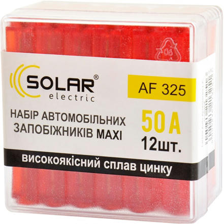 Набор предохранителей Solar макси 50А 12шт (AF325)