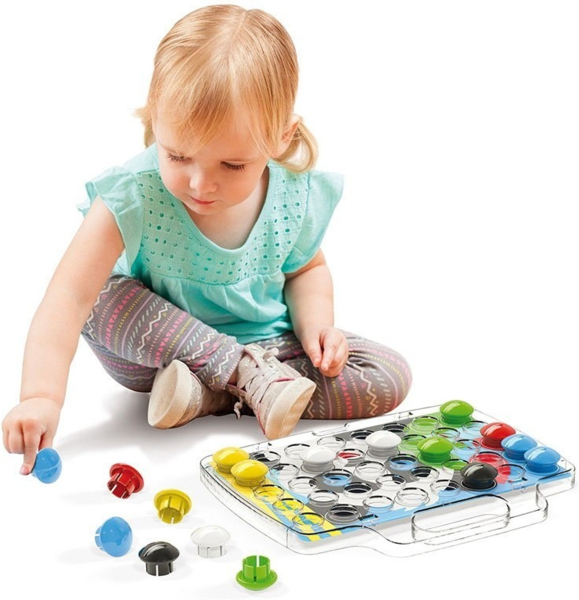 Идеальный набор для знакомства с мозаикой и творчеством с раннего возраста. Благодаря большим фишкам диаметром 33 мм набор прекрасно подходит для маленьких детей - фишки легко держать и вставлять в основу.