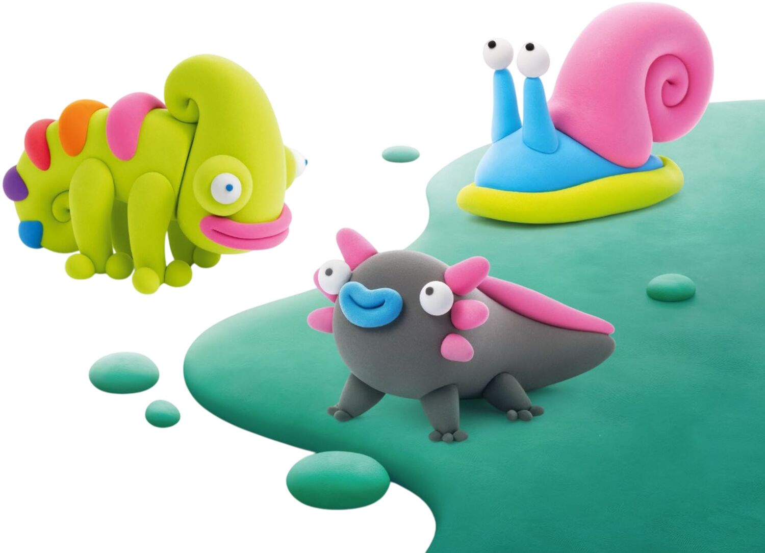 Набор самозатвердевающего пластилина Липака - Экзотические животные Хамелеон, Гастропода, Аксолотль – развлечет и детей и взрослых. С помощью анимационных инструкций в приложении HEY CLAY вы сможете слепить забавных хамелеона, гастроподу и аксолотля. А благодаря компактным размерам, набор удобно брать с собой. Пластилин твердеет на воздухе за 24 часа, после чего можно играть созданными фигурками.