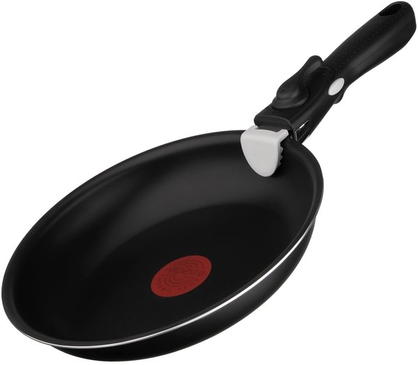 Набор состоит из трех предметов: двух сковород и съемной бакелитовой рукоятки с soft-touch-покрытием. Является очень удачным решением для любителей разумно использовать свободное пространство. Сковорода изготовлена из алюминия, внутри покрыта противопригарным покрытием. На дне толщиной 2,5 мм предусмотрен датчик температуры. В наборе сковородки двух размеров: диаметр большей составляет 28 см, а меньшей — 24 см. Обе пригодны для использования со всеми основными видами плит, включая индукционные, однако не рекомендованы к мытью в посудомоечной машине для сохранения долговечности покрытия.