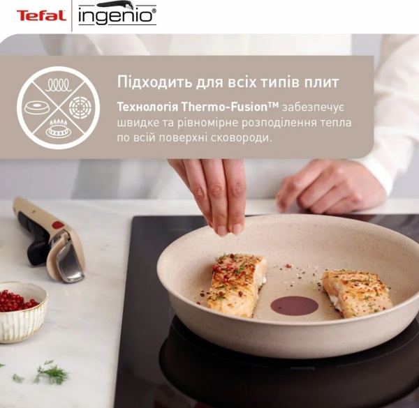 Индикатор становится полностью красным, когда сковорода достигает идеальной температуры для начала жарки. Благодаря улучшенной технологии Thermo-Signal ваши блюда всегда будут иметь идеальный цвет, текстуру и вкус.
