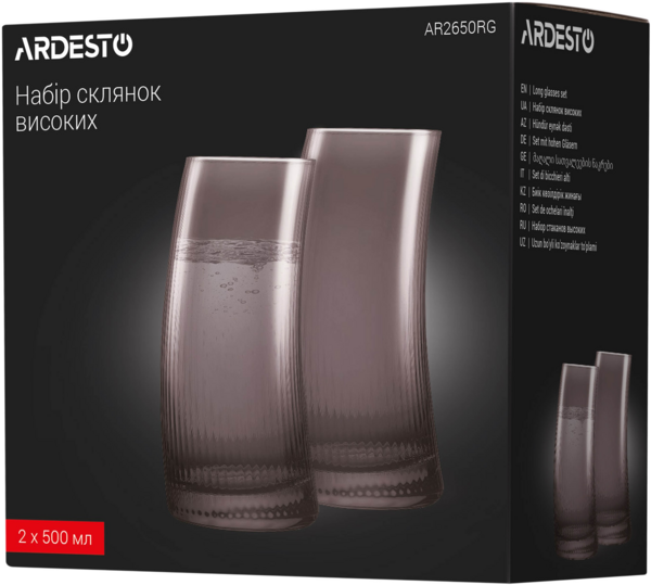 - Набор стаканов высоких ARDESTO Graphite, 500мл, 2шт, серый (AR2650RG)