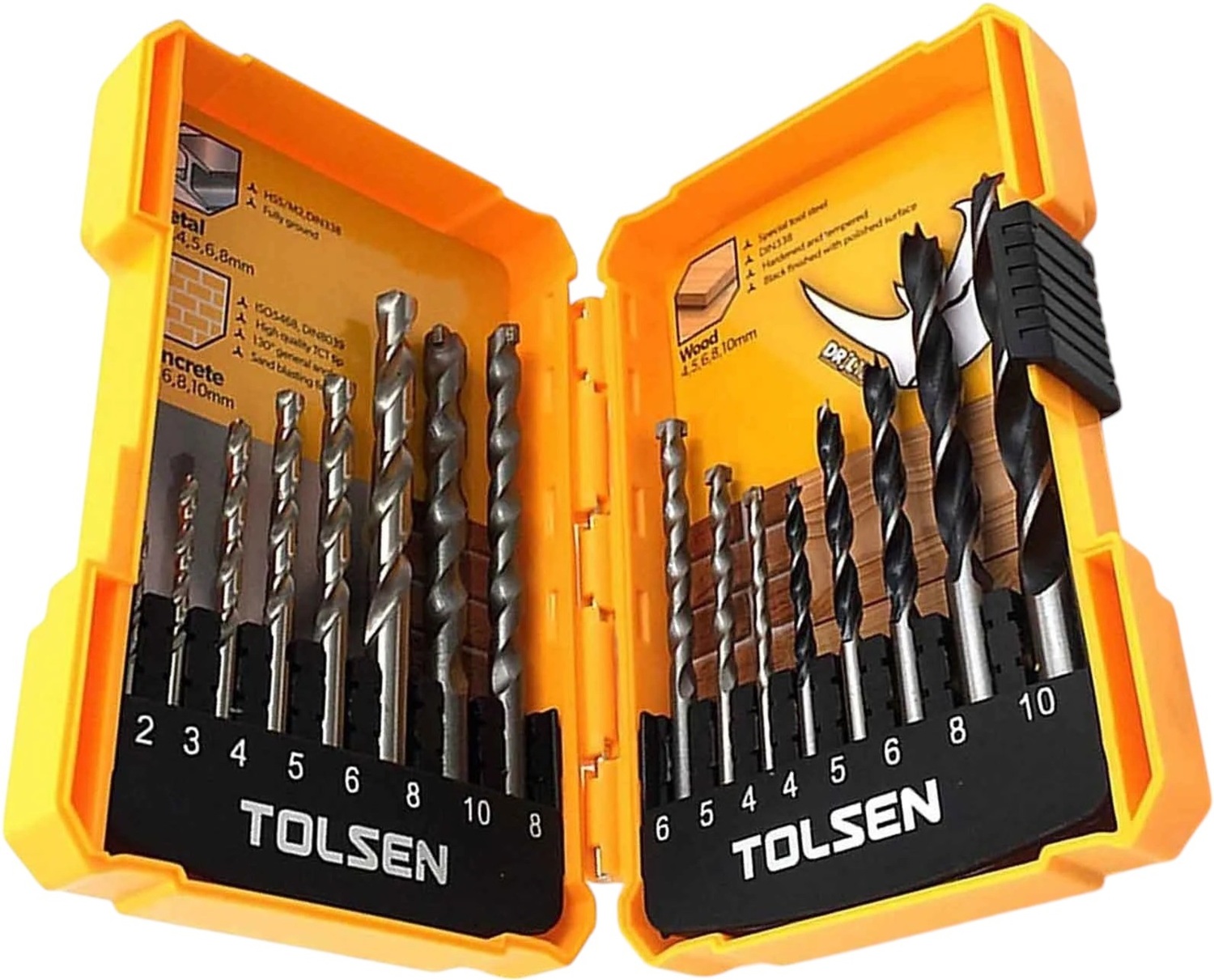 Набор сверл по дереву-металлу-кирпичу Tolsen, 16шт, 2-10мм, кейс (75628)
