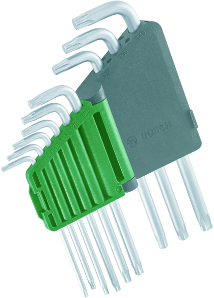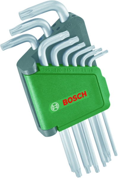 Набор ключей Torx от Bosch - это новый уровень гибкости и удобства для домашнего механика и сборки DIY. В набор входят все распространенные размеры для домашнего использования и хобби: TX8, TX9, TX10, TX15, TX20, TX25, TX27, TX30, TX40. 9 ключей Torx удобно хранятся вместе в клипсе для хранения с несколькими угловыми упорами для легкого извлечения ключей.
