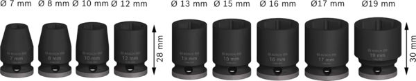 - Торцевые головки длиной 28 мм - 7 мм, 8 мм, 10 мм, 12 мм.