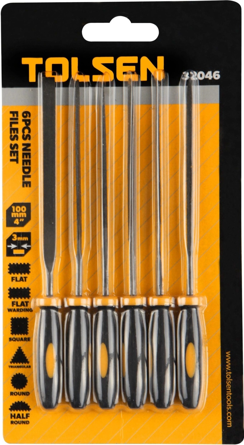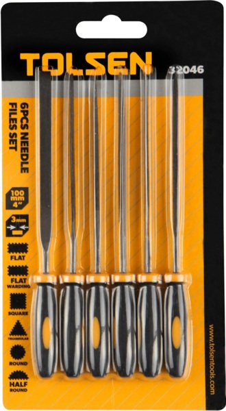 Надфили по металлу Tolsen, набор 6шт, алмазные, диаметр 3мм, двухкомпонентная рукоятка, 100мм (32046)