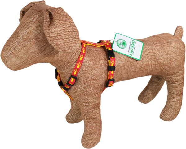 Шлея Lucky Pet капрновая Н-образная Лапки красно-желтая 2,0/40-60см/58-80см