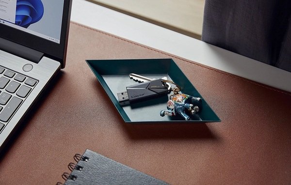 Легкое устройство для хранения данных, совместимое с USB 3.2 Gen 1, которое удобно брать с собой.