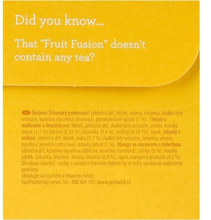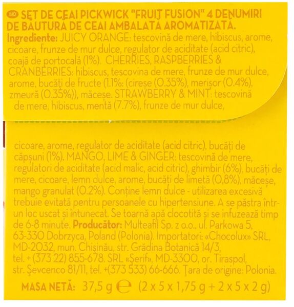 Фруктово-травяной ассорти от Pickwick - это хороший выбор для тех, кто хочет разнообразить свои чайные привычки и насладиться натуральными вкусами без добавления искусственных ароматизаторов или красителей. Чай легко заваривается путем замачивания пакетика в горячей воде на несколько минут, что позволяет ингредиентам полностью раскрыть свой аромат и цвет. Вкус каждого напитка индивидуален и может быть усилен или смягчен в зависимости от времени заваривания. Не содержат кофеин, что делает их подходящим выбором для употребления в любое время дня.