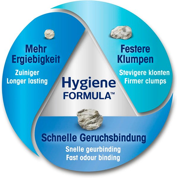 Hygiene Formula 3in1 состоит из гранул трех разных размеров. В крупных гранулах особенно много больших пор: эти поры впитывают жидкость подобно губке и поглощают запахи. Площадь пригоршни крупных гранул сравнима с площадью целого футбольного поля они распределяются между средними и крупными гранулами и способствуют оптимальному раскрытию их полезных свойств. Наш наполнитель кошка практически не выносит на лапах и шерсти из лотка Это позволит Вам избежать ненужной уборки. С Biokat’s лоток Вашего питомца надолго сохранит свежесть и чистоту.