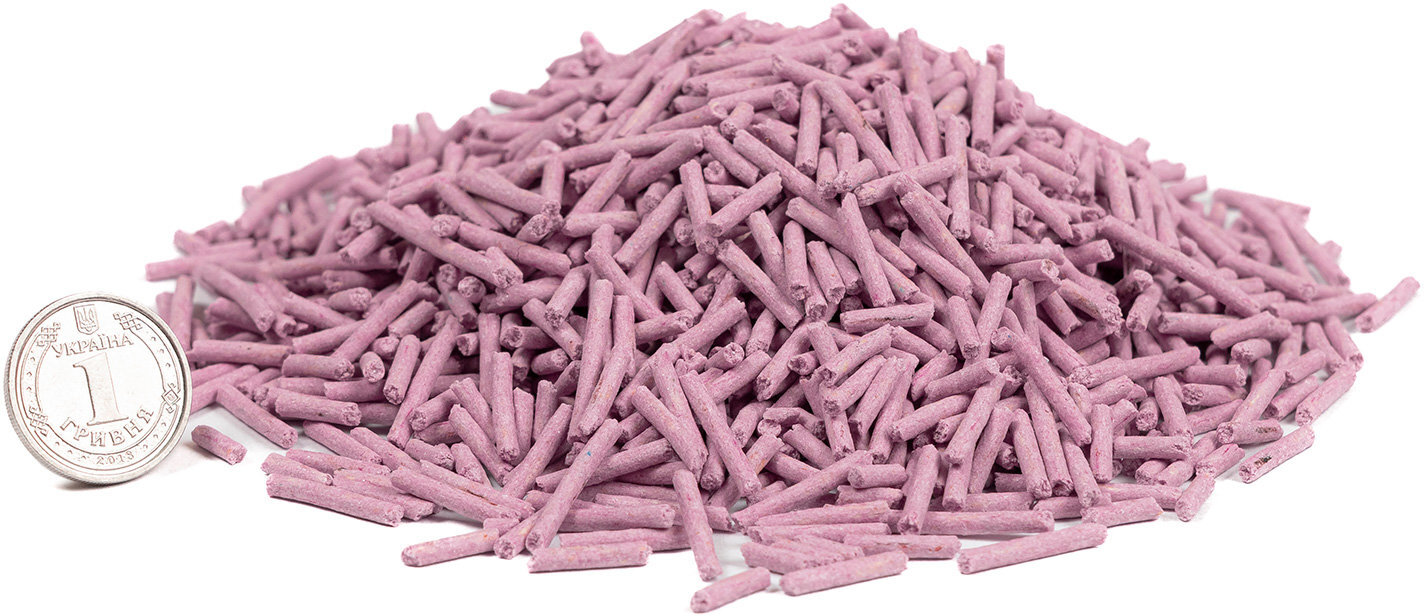 Спрессованная масса соевых волокон, пищевой крахмал, гуаровая камедь, эссенция лаванды. Не содержит вредных для здоровья животных и людей веществ. Без ГМО.