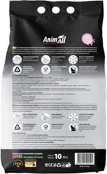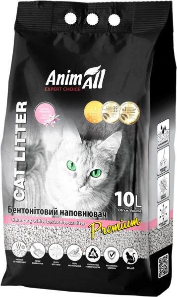 - Наполнитель AnimAll Бентонитовый белый 10 л с ароматом детской пудры