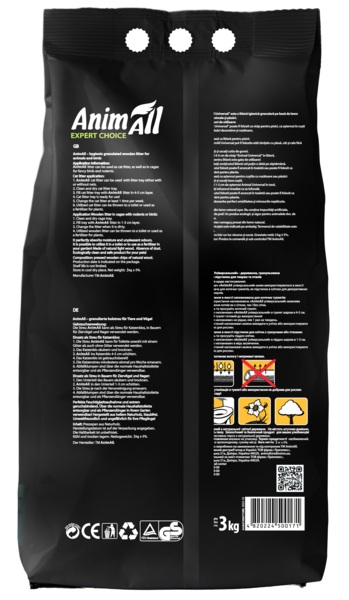 - Древесные гранулы AnimAll — абсолютно безвредны и безопасны. Одного 3-х килограммового пакета наполнителя AnimAll хватает примерно на три недели для 1 кошки.
