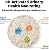 - Легко читаемое изменение цвета при потенциальных нарушениях мочи: наполнитель меняет цвет благодаря активируемому pH в течение 3 секунд при контакте с аномальной мочой, сигнализируя о нарушениях мочевыделения, таких как заболевание нижних мочевыводящих путей у котов.